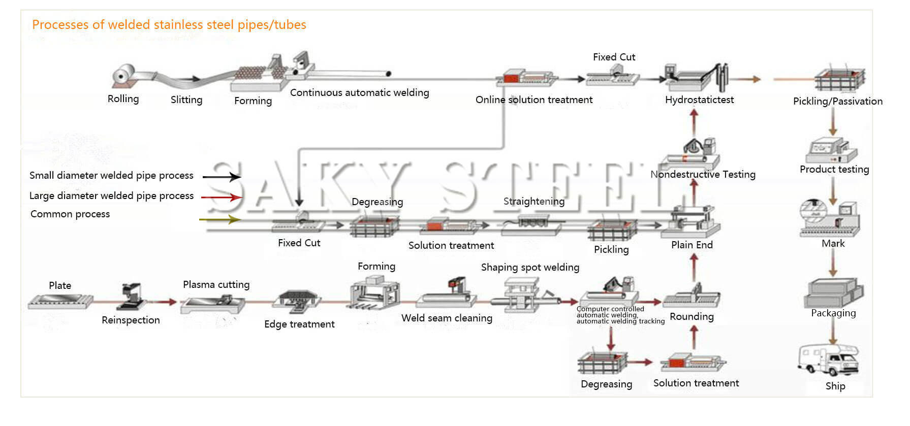 | Processes of welded stainless steel pipes/tubes : |