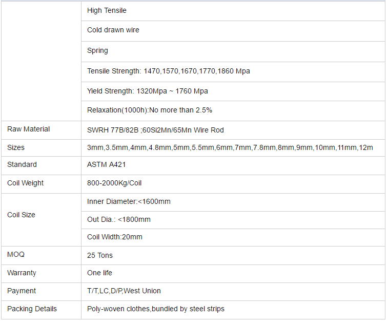 | High Carbon Spring Steel Wire | |||
